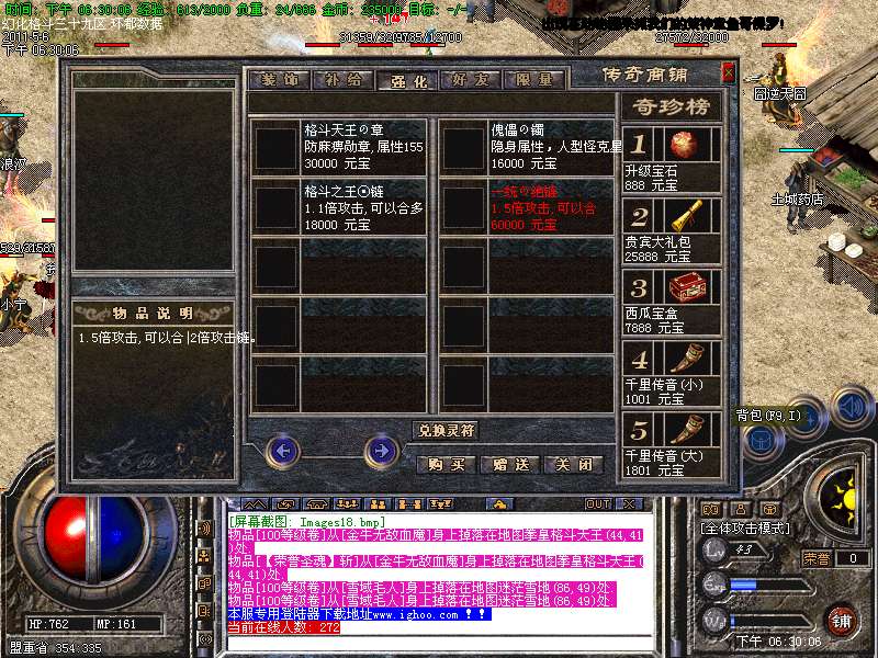 最新加入终级装备.[金牛の套装] [极品金牛の套装] [拳皇メ套装] [恶魔の套] [荣誉套][【荣誉格斗】套] [【荣誉圣魂】套] [格斗天王系列] [格斗帝王系列] [无双格斗系列] [权倾天下系列] ,具体需要您在游戏中慢慢体验。