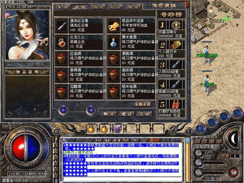 [装备商铺]只有你有元宝就可以买到高级装备了
