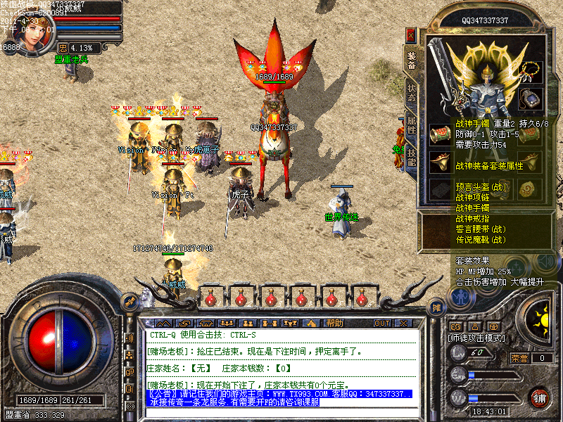 套装属性:战神套.全套8件:HP+20%。MP+20%.合击威力增家10%..狂战套.全套8件:全属性+5.吸血35%.防暴+10%