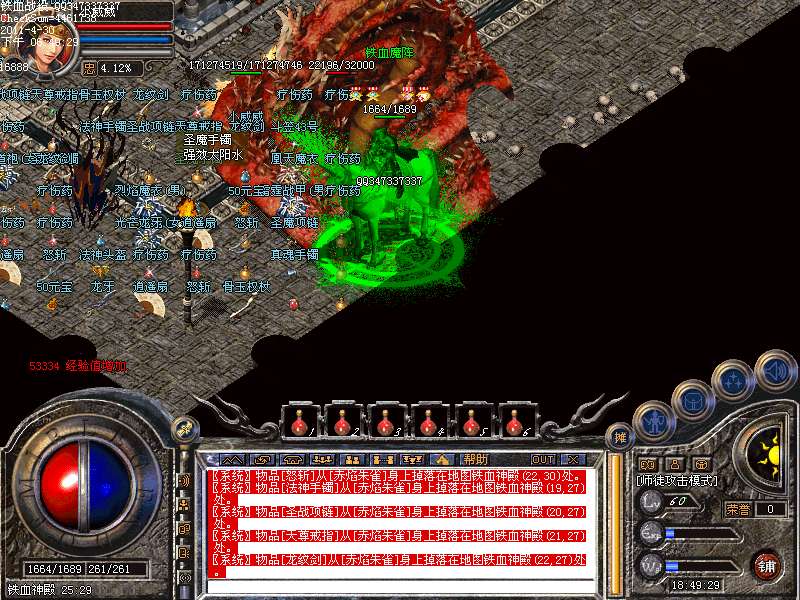 小怪大量爆赤月.雷霆.可以回收元宝.让大家不花钱带终极