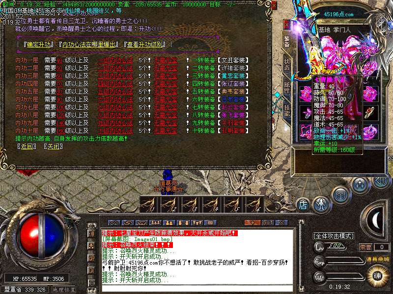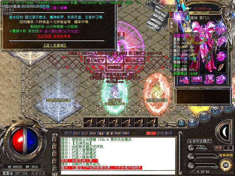 【新手上线】平衡了三职业!人物上线就送新技能和大量财富包括元宝!升级无需打怪!泡点直接到顶级!.