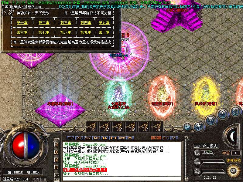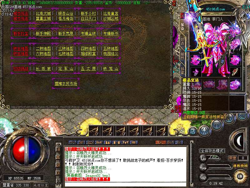 【新手上线】平衡了三职业!人物上线就送新技能和大量财富包括元宝!升级无需打怪!泡点直接到顶级!