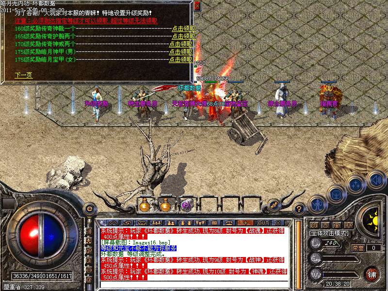 [255,249]攻城奖励:晚上22:01-22.30可以自行在沙皇宫领取奖励.攻城奖励为128W元宝!