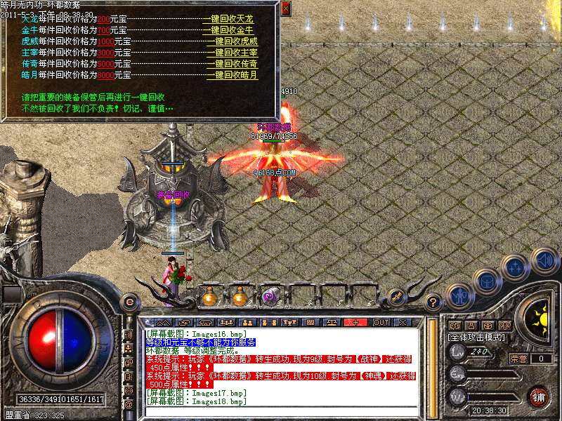 [255,249]元宝爆率:元宝爆率超高.翡翠圣地.水晶圣地.黄金圣地等各地图打出装备回收可以获得大量元宝!