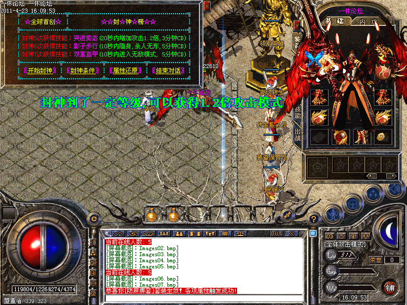 封神到了一定等级,可以获得1.2倍攻击模式,隐身模式,无敌模式