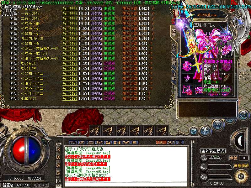 版本介绍:【新手上线】平衡了三职业!人物上线就送新技能和大量财富包括元宝!升级无需打怪!泡点直接到顶级!.