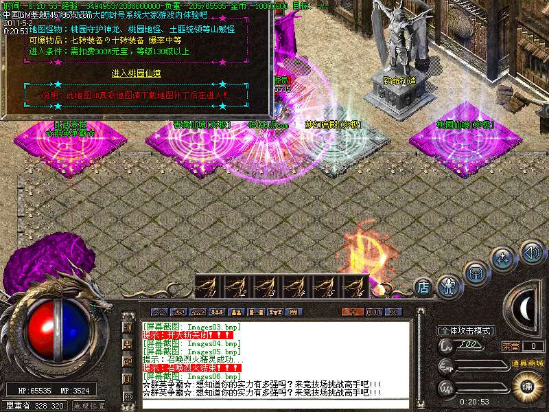 【转生系统】人物转生需要到盟重土城左边的转生雕像那里完成转生.转生后可获得属性奖励.还有酷炫的转生封号.