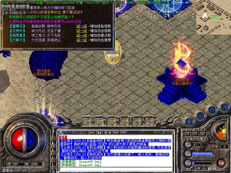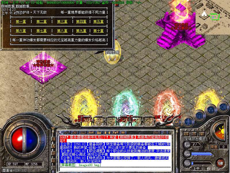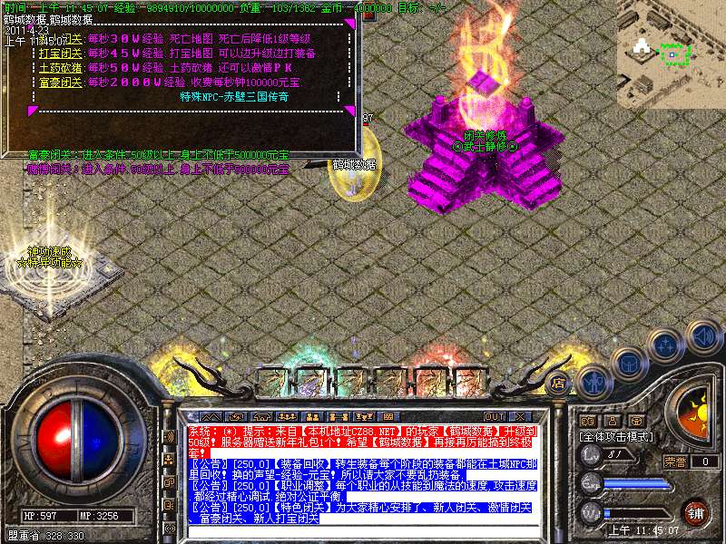 【新手上线】平衡了三职业!人物上线就送新技能和大量财富包括元宝!升级无需打怪!泡点直接到顶级!