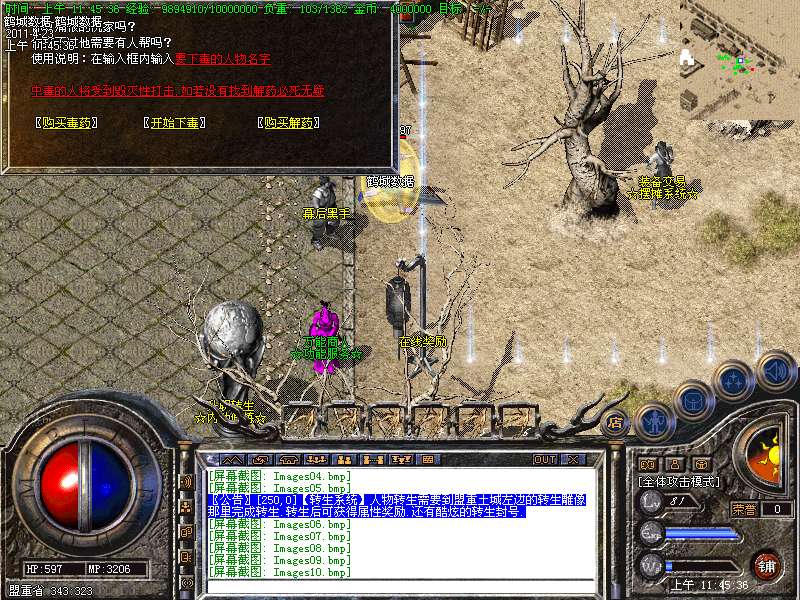 [250,0]【转生系统】人物转生需要到盟重土城左边的转生雕像那里完成转生.转生后可获得属性奖励.还有酷炫的转生封号.