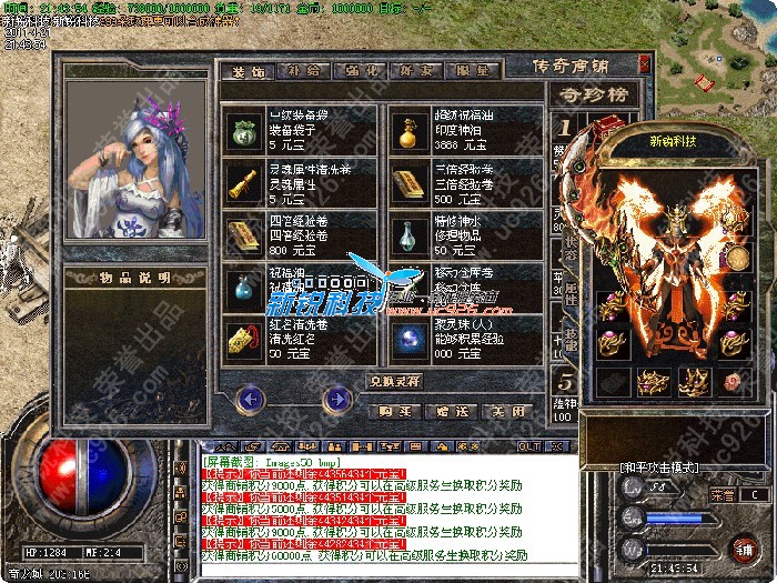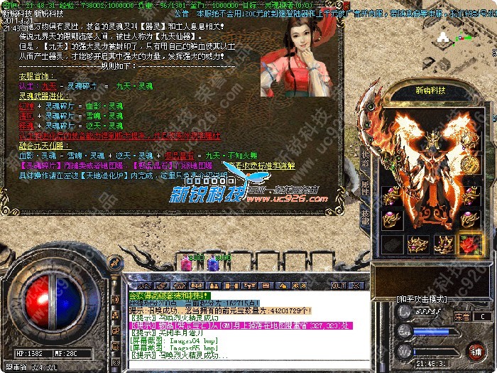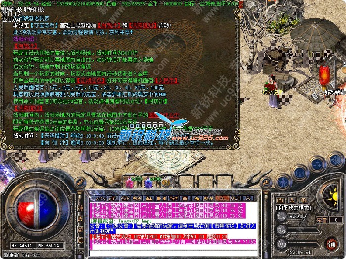 9.服务器将每天晚上18:00在【虚无界天】进行怪物攻城活动,小怪必爆元宝。