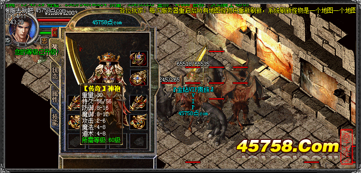 增加了终极装备【传奇套装】,严格控制传奇套装的爆率,想要2天就终极套是不大可能的,增加了游戏的耐玩性!!!!