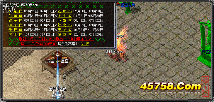 【更新】增加12星座,每20分钟每个星座刷3只守卫,其中一只为真,杀死必爆1000元宝!!