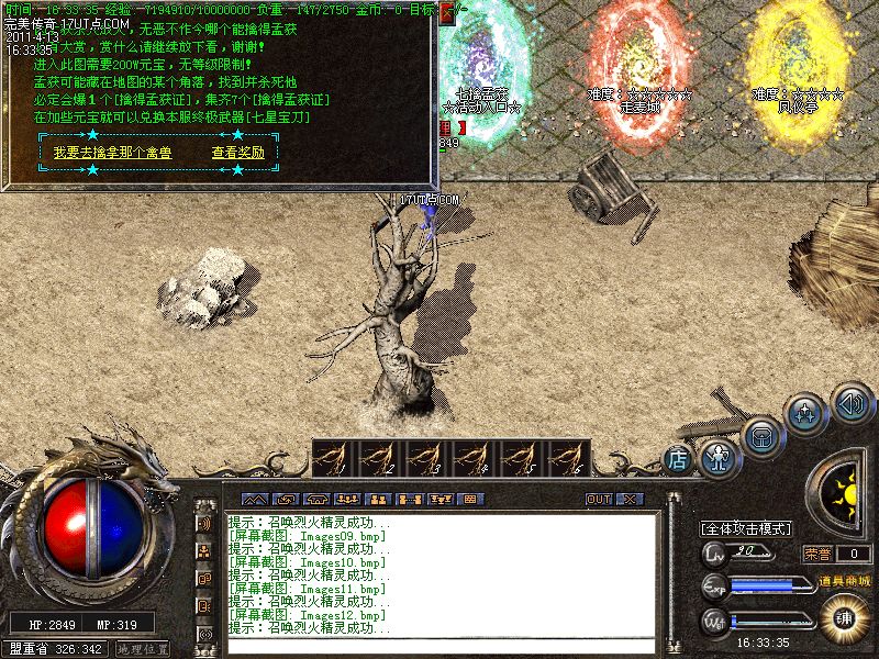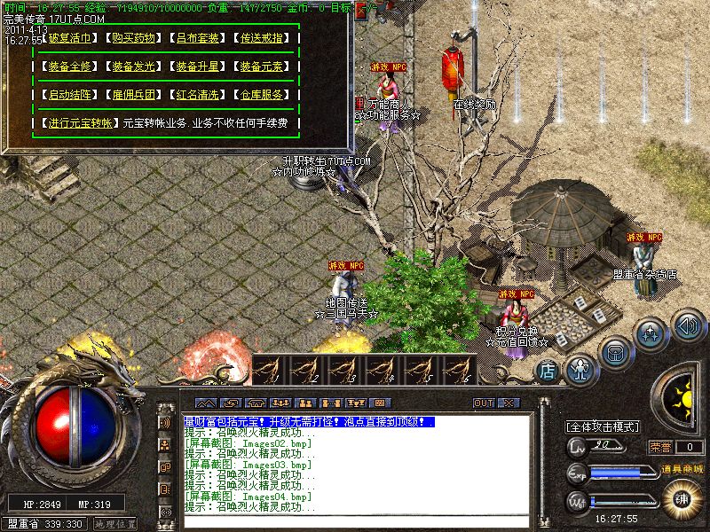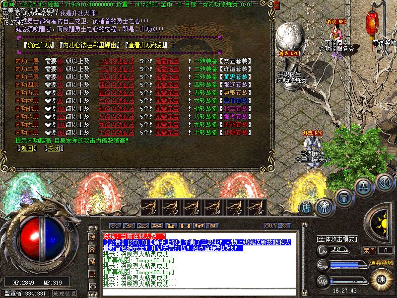 【转生系统】人物转生需要到盟重土城左边的转生雕像那里完成转生.转生后可获得属性奖励.还有酷炫的转生封号和名字变色.