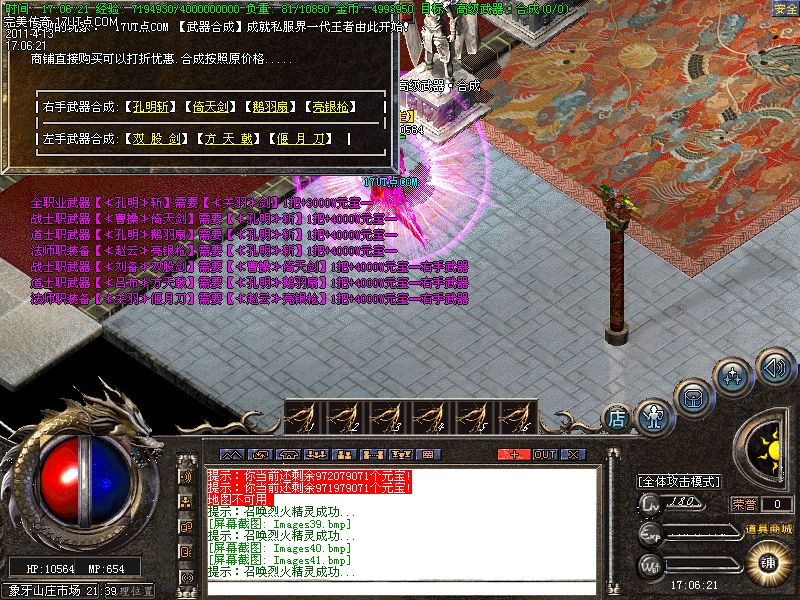 【装备回收】转生装备每个阶段的装备都能在土城NPC那里回收!换的声望-经验-元宝!所以请大家不要乱扔装备.