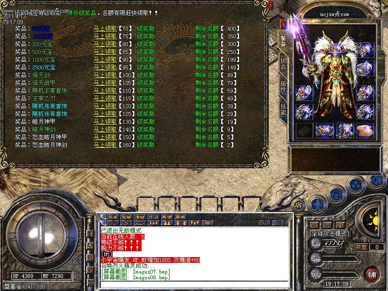 2.【本F均衡了三职业的平衡!道士上线招《圣斗士》85招《黄金圣斗士》90招《鬼武者》120招《万劫龙神》】!