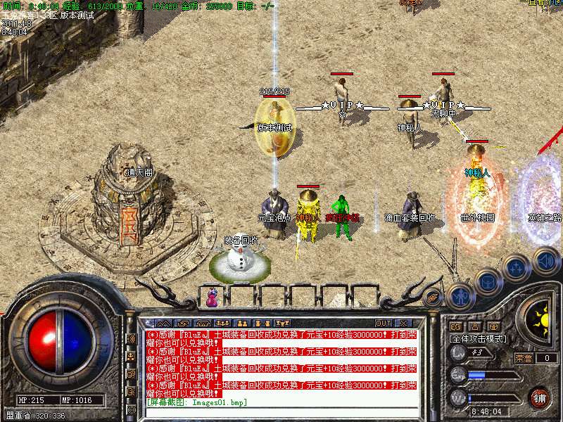 【装备回收】可回收玩家打出来的各种装备及各种新衣服.可以在土兑换NPC那里换取能量.