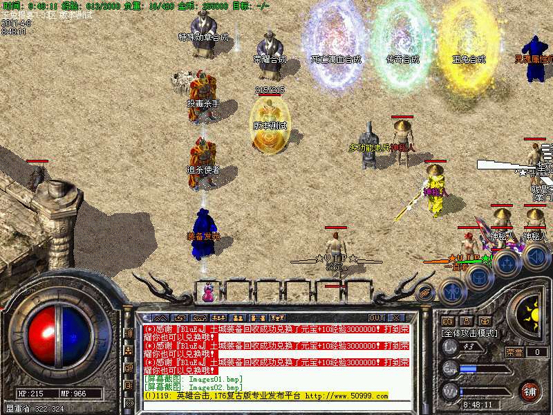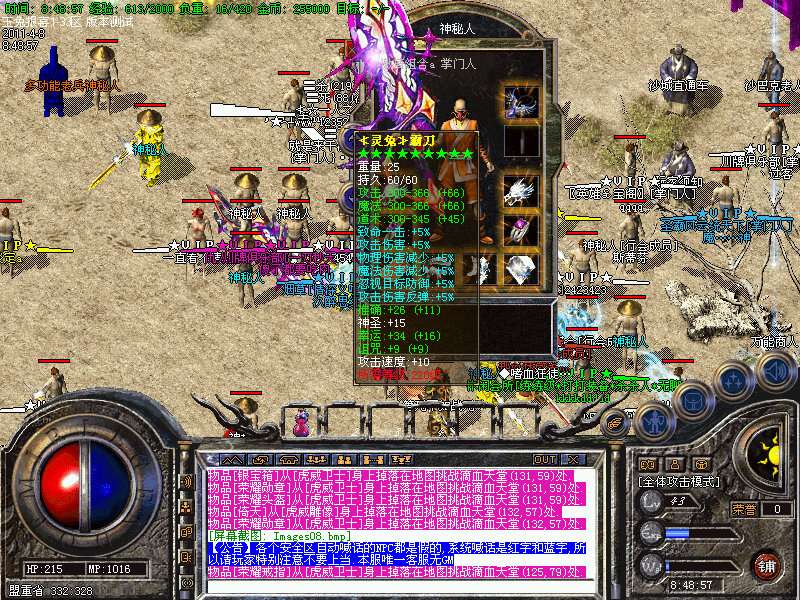 【沙城系统】沙城城主尽显王者风范,可以全服红字公告!武器最多升5点,时间为3分钟左右一次!