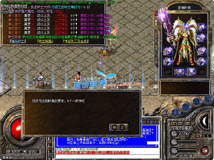 【更新】更新转生系统,1-5转,转生后每转都可以获得相应属性点,每转可获得强悍技能.详情请看转生仙子!