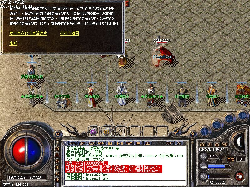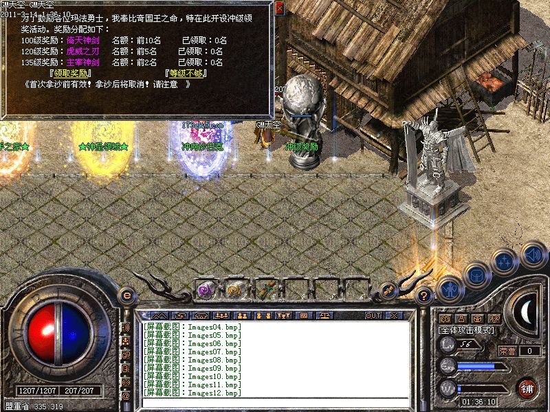 本服务器新区首次拿沙奖励城主1000000元宝!沙奖励在22点5分至22点15分领取!