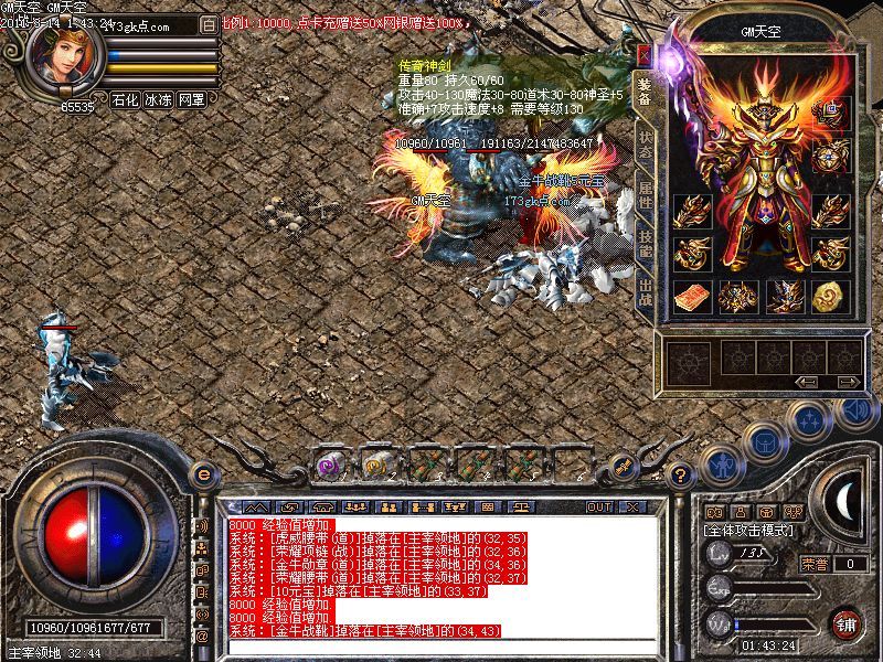 每半小时启动全服挑战心魔,在行会PK室暴全服所有装备。机会不要错过!