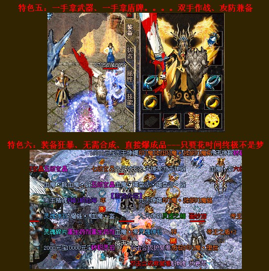 〖提示〗增加贵族地图.在贵族使者进入.需持有贵族令.贵族令在商铺购买.在背包中.不会掉落.地图掉9-16转 神.魔.轩辕.帝王.聖龍.黄金装备.银虎 金虎 神石 爆点:狂暴终极 白虎神 宇宙争霸者 虎啸给力BOSS 帝王真身 爆率适中 燃烧战士必爆高级转生材料!