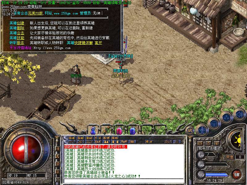 6、综合服务员:各项辅助功能,介绍下装备回收系统:祖玛回收2元宝+3w经验,赤月回收10元宝+25w经验,衣服武器回收20元宝+50w经验,大大的提高了元宝数量和经验值,让你打装备也能快速升级!
