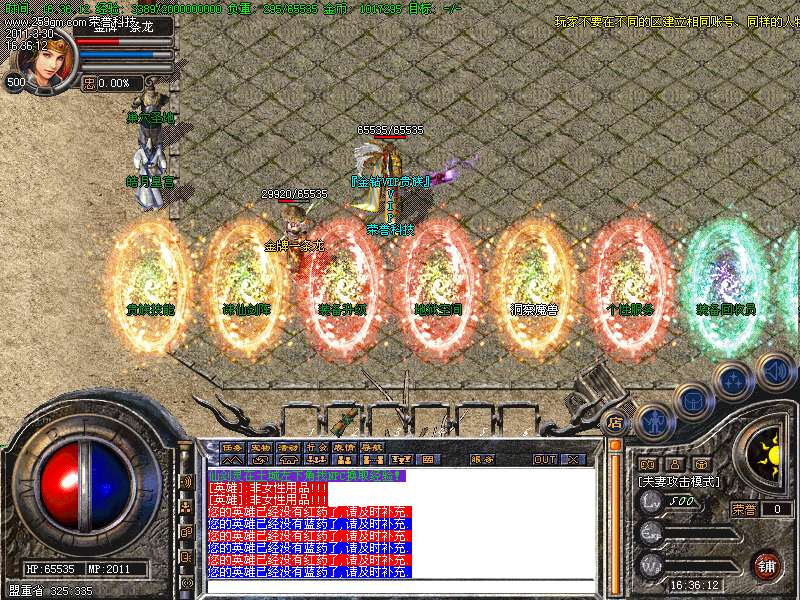 1、传送小姐:传送分城市传送、危险传送、高级传送。主要介绍下高级传送:高级传送需要20w金币,其中尸王殿、牛7、幻境7、抉择之地、沙影这些经典地图玩家去的比较多。为了使其他地图也有玩家打宝,所以在死亡棺材、沃玛三层、石墓七层、教主大殿、尸魔三层、骨魔五层、封魔殿、幻境八层每三小时刷新一只大BOSS(八大BOSS)!幻境10层每半小时刷新一次小BOSS,2小时刷新一次大BOSS!