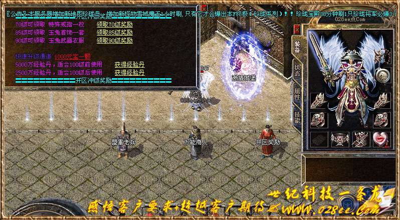 特别提示:本服不断更新!最新添加激情城堡和王者丰碑!激情城堡开启后每10分钟刷一个王者丰碑.暴幻神、玲珑、和大量元宝!!