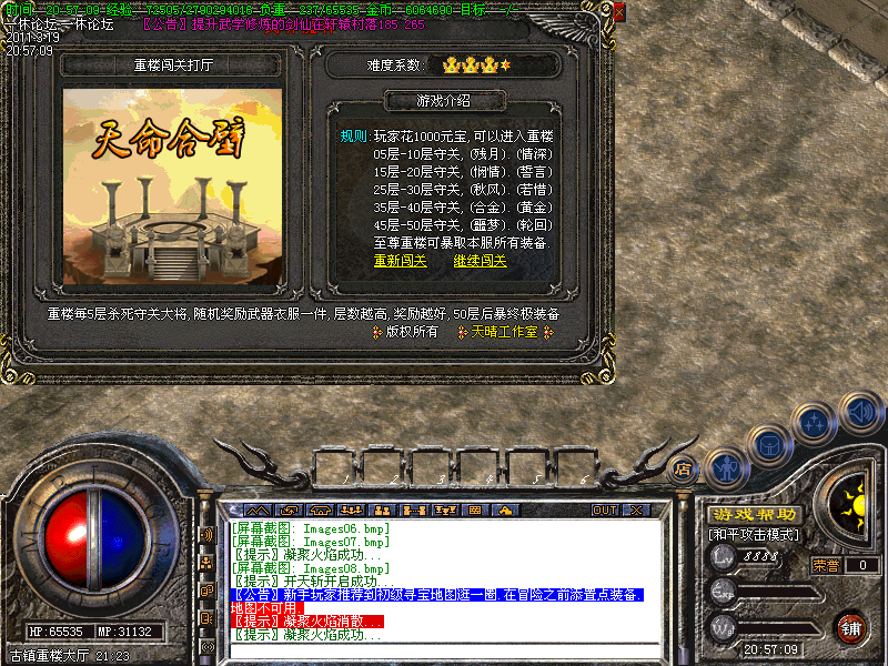 【特色提示】:神秘之地可以申请天下第一,天下第一上线1.3倍攻击,王侯上线2倍经验....
