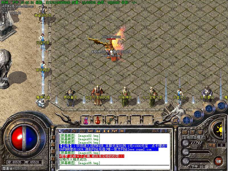 【公告】:欢迎进入<$SERVERNAME>,本服元宝比例:1元=1000元宝 .点卡赠送70%网银赠送100%.请到网站充值[唯一官方网站]www.xunm2.com....
