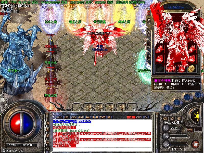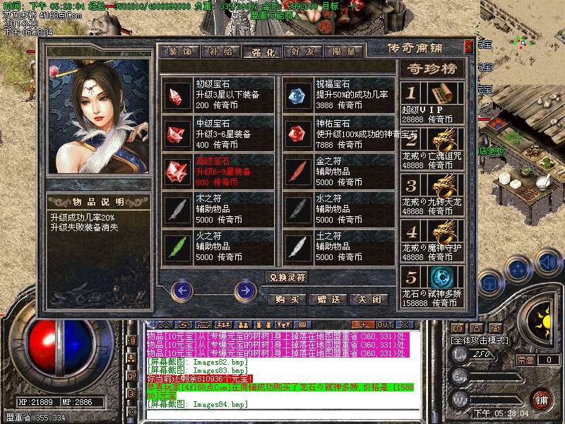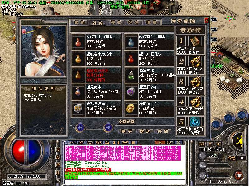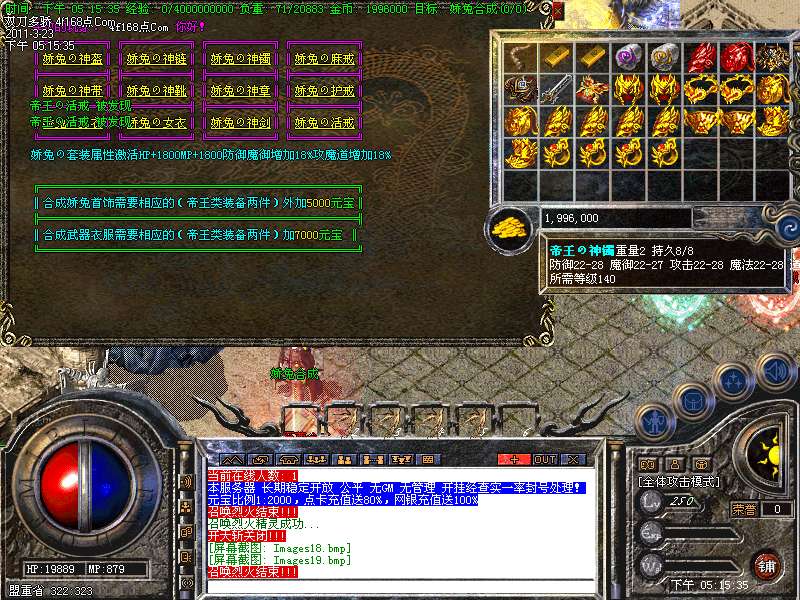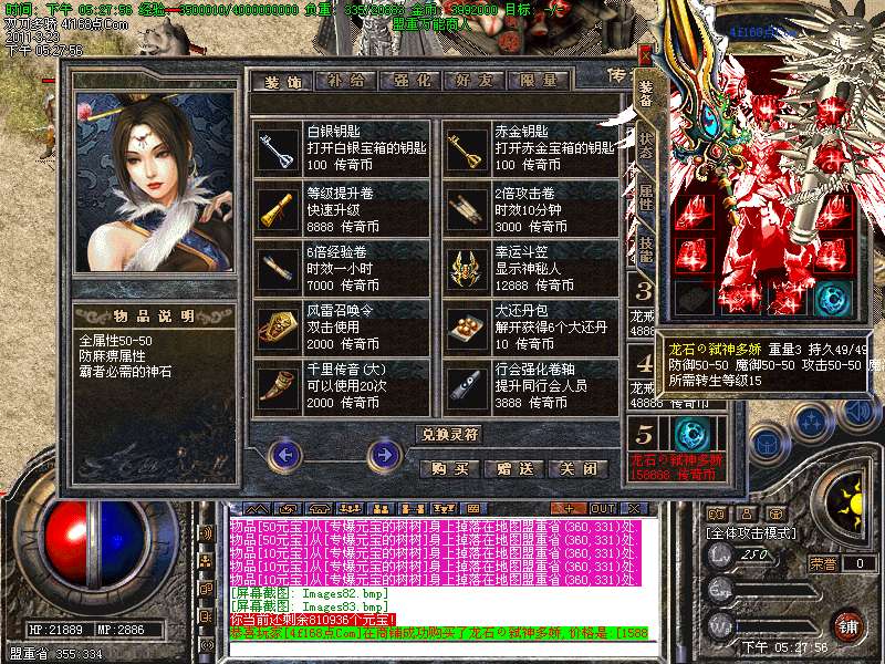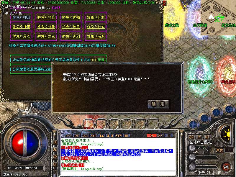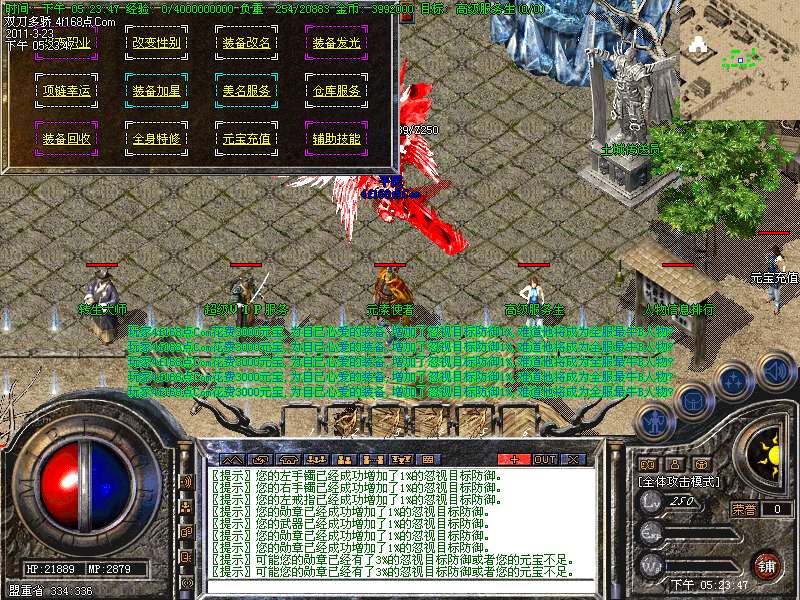 元宝获取:充值元宝送积分换取道具,也可以通过打怪和回收装备获得丰厚的元宝