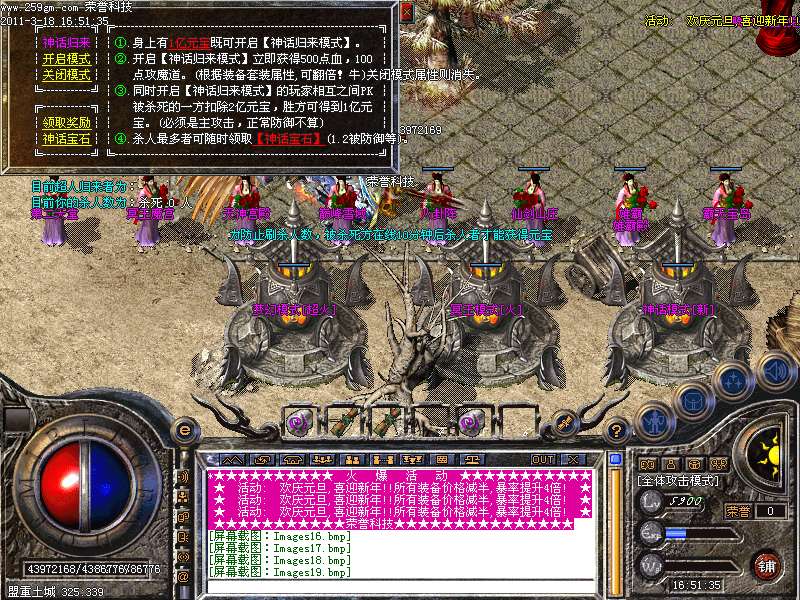 - ☉ GOM引擎传奇端游【超级骷髅王之五行世界】Win一键端+配套补丁网站+架设教程
