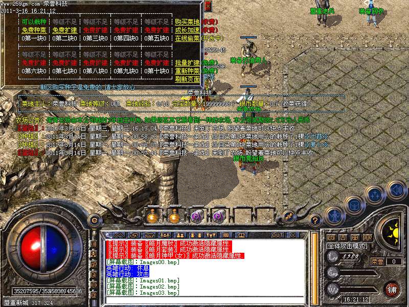 ◆新手闭关:每秒80万经验!免费泡到顶级! ◆中级闭关:每秒150万经验!经验飞飚!(免费) ◆元宝闭关:每秒1500万经验100元宝/秒! ◆装备活动:开区当天举行一场夺宝活动,爆终极装备! ◆元宝活动:每天下午3点,争夺天下第一活动!奖励海量元宝! ◆农场活动:农场种植有一定几率获得终极装备! ◆新区第3天晚上8点攻沙,奖励88万元宝!