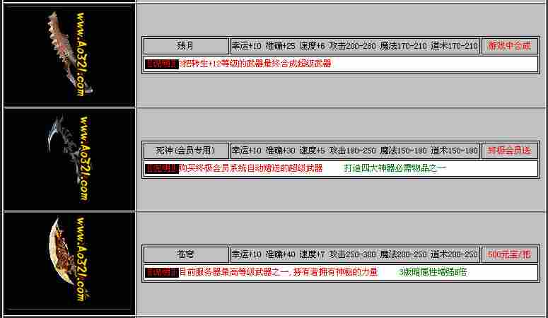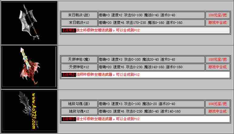 为了奖励转生玩家,终极的转生武器可以合成到+12,并且如果您拥有3把不同的+12武器就可以合成比会员武器还要好的残月.