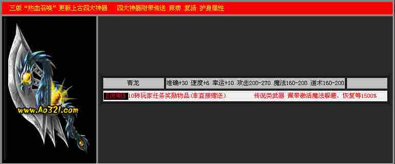 补丁下载:www.ao321.com 如下载不了补丁的朋友请加QQ:44557661 此版本成功开区案例,[绝无任何后门和BUG下载直接开区]