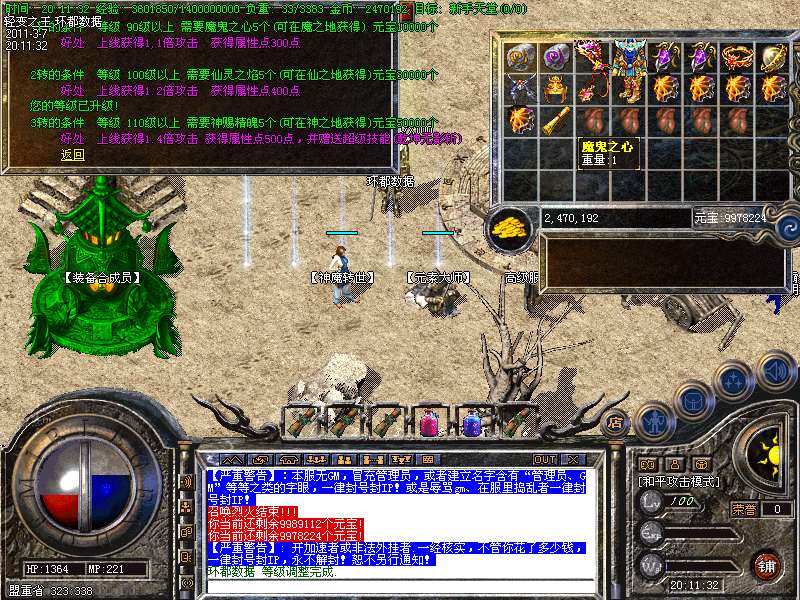 一.【地图介绍】:练级地图为疯狂练级、恶魔广场,石墓、生死之间、幻境三层、霸者大厅、尸魔三层.特别自助刷怪地图恶魔广场为5倍经验三倍经验石可实现15倍经验