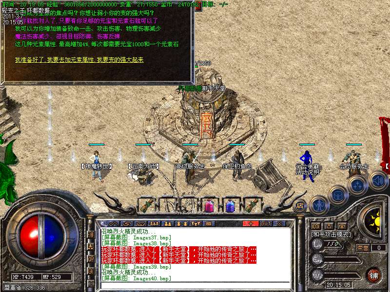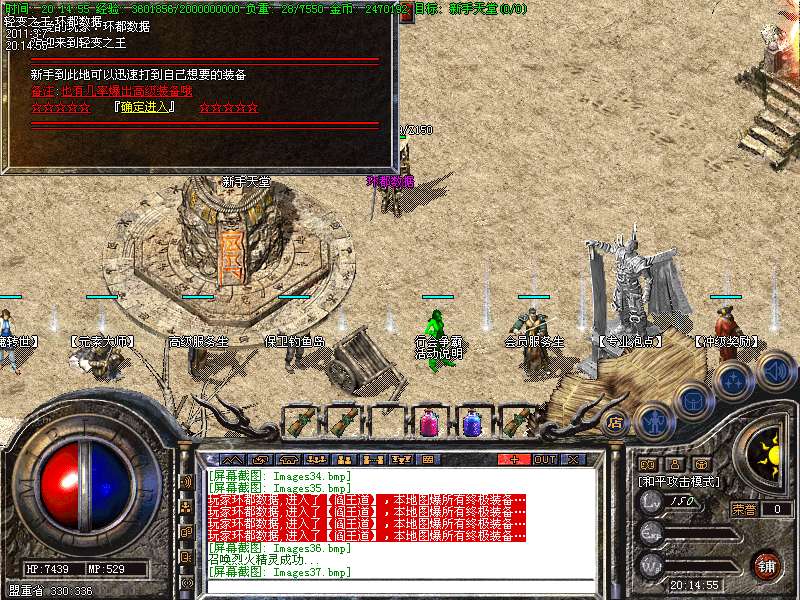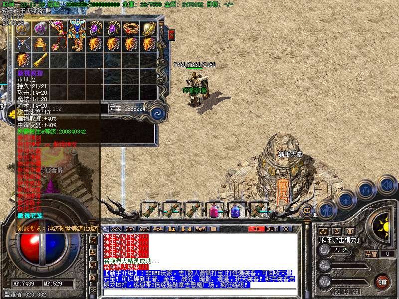 【新手介绍】:新人战场出来后直接到新人泡点轻松到80级. 新手打宝:魔龙地图.轻松获得武装自己的装备.还可以暴到宝箱卖元宝.