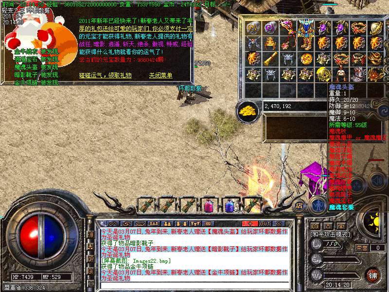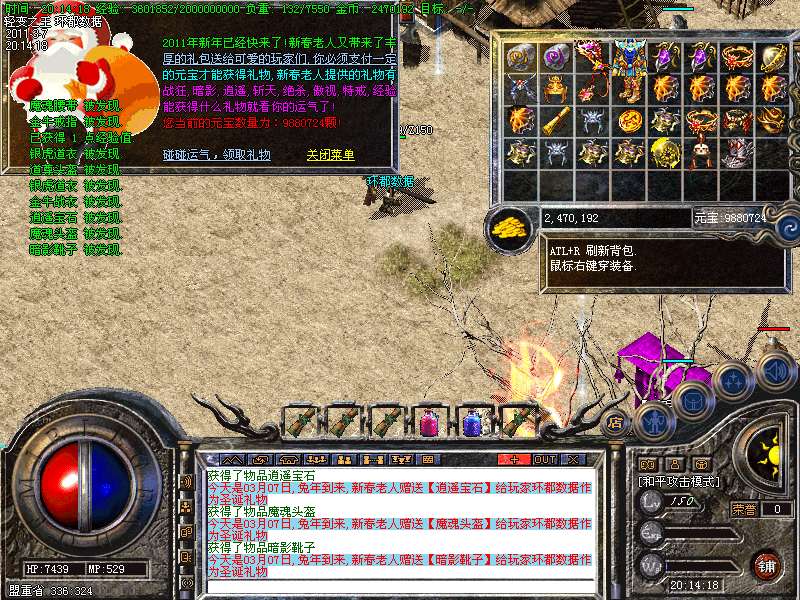 八.【特殊刷新】用魔法神石在土药旁边的魔法结阵可召唤出蚩尤.同时可获得丰富的奖品.--即本服的所有装备都可送出!