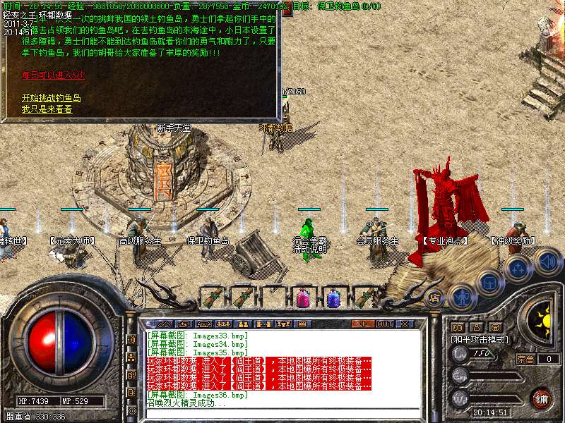 一.【特色活动】蚩尤必暴元素石.需要魔法神石提交,召唤出蚩尤同时可获得丰富的奖品.包括暗影神斩、致命2套装卷、逍遥首饰及武士神石、合成仙丹等大量奖品!