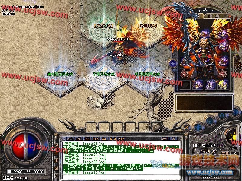 羽化就是大家常见的转生,本站一共九次转生,满转可获得6600点属性点,还有珍贵的【王朝圣水】,是PK中必须的物品!