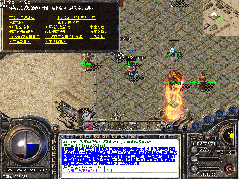【新手练级】新手上线,新手村,可领取英雄,并可领取合击技能,英雄等级达到43级系统会赠送一个火龙之心,在新手练级处达到40级可获得10灵符,可以在雷炎轻松挖到43级,有合击后,打怪就相对轻松了。