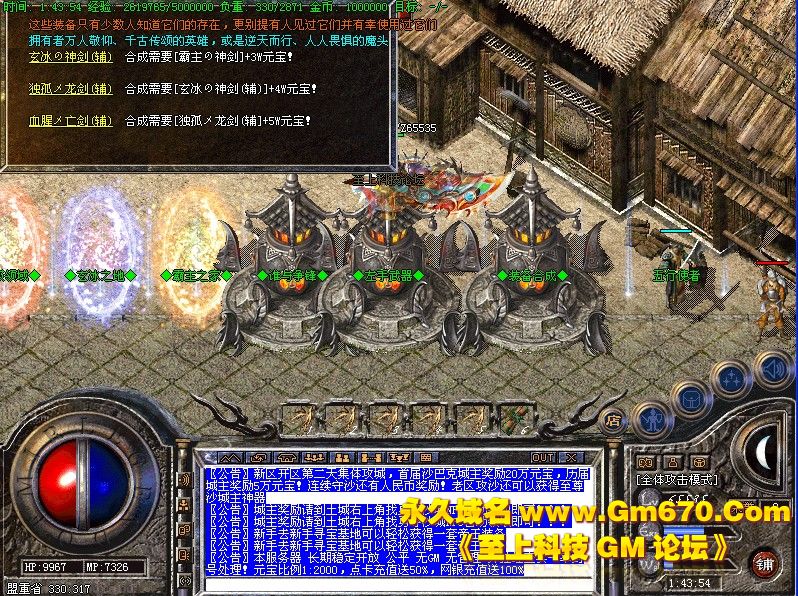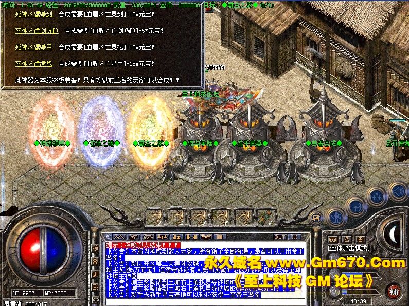 【装备升级】装备升级加入了极品装备升级师 成功率为100% 只要你打到神油就可以去升级你的任何装备 使用元宝也行!.