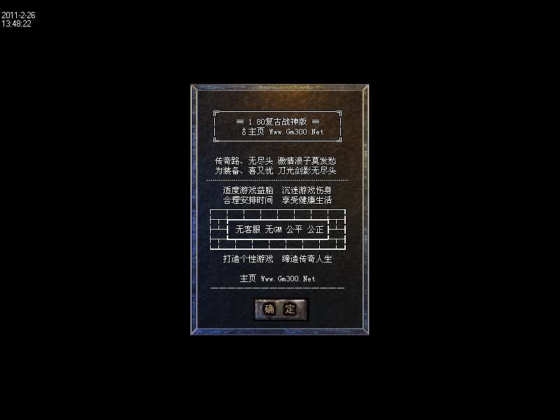 01 本游戏为独家1.80战神复古版,无GM无客服,真正的散人天堂!!