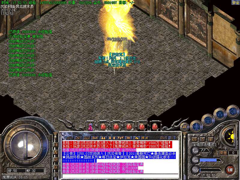 激情闭关 每秒1000万经验 800万内功