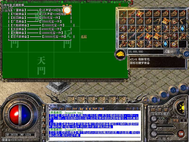 【装备回收】转生装备每个阶段的装备都能在土城NPC那里回收!换的声望-经验-元宝!所以请大家不要乱扔装备.