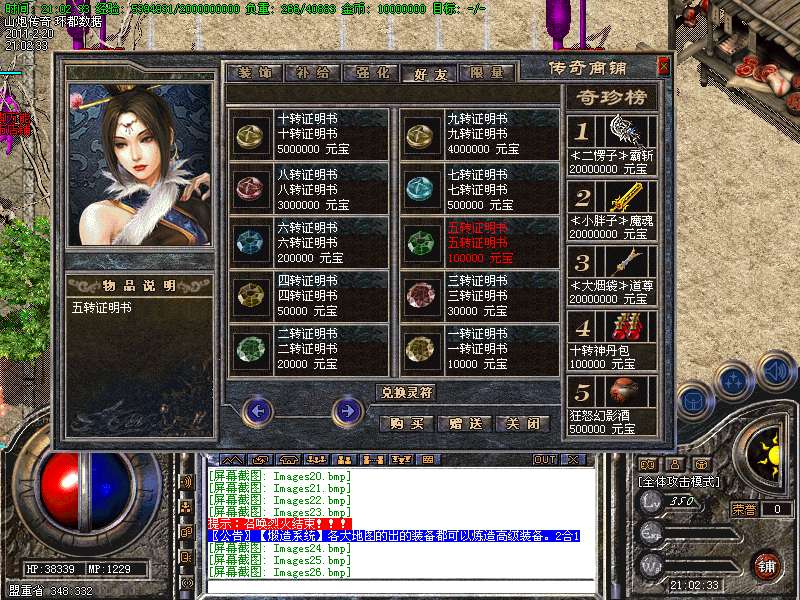 【转生系统】人物转生需要到盟重土城左边的转生雕像那里完成转生.转生后可获得属性奖励.还有酷炫的转生封号.
