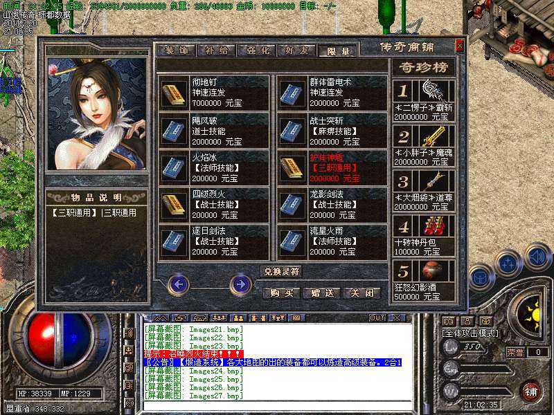 【新手上线】平衡了三职业!人物上线就送新技能和大量财富包括元宝!升级无需打怪!泡点直接到顶级!.