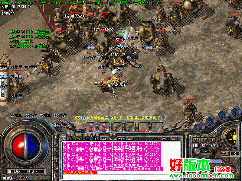 封魔谷皇宫内每晚7点准时刷超级BOSS曹操,爆顶级装备系统每三小时还会在荆州举行一次大型送宝,刷新美女貂禅,可以爆出倚天装备