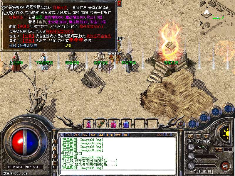 5.土药中心杀怪爆大量元宝,并且可以泡经验,相当的激情。