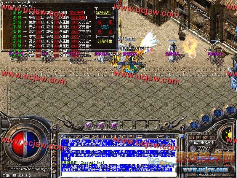 ③-攻城奖励高:新区功城奖励元宝800亿.沙巴克2个城主各400亿,攻城结束沙城主不要下线,自动出现对话窗口领取奖励,中途下线领不到奖励自负!